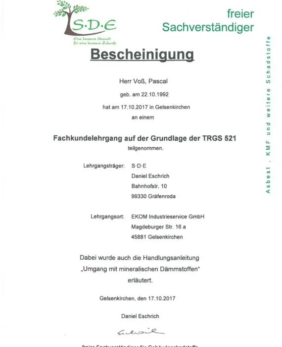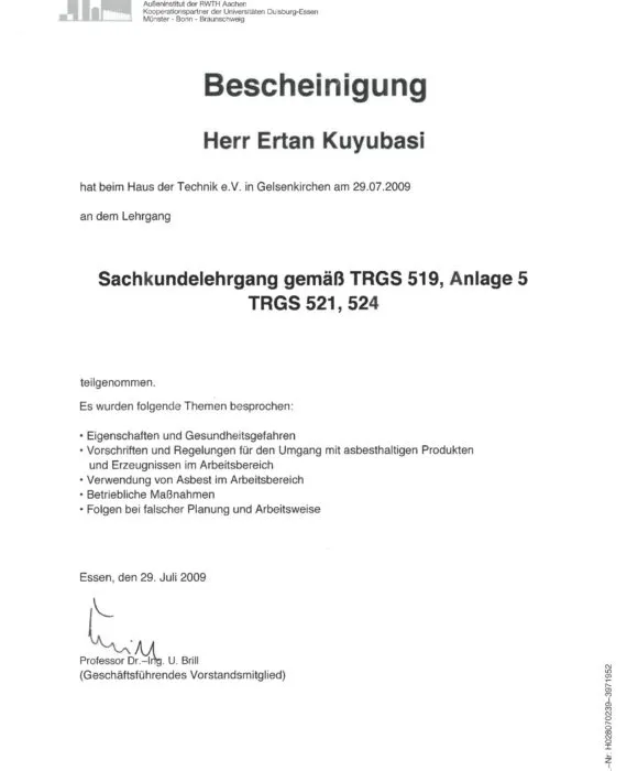 Haus der Technik – Sachkundelehrgang – Bescheinigung