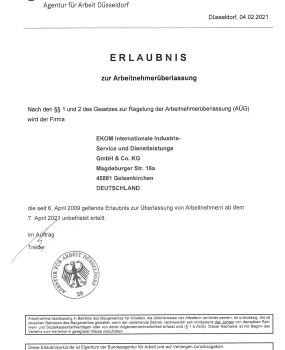 Erlaubnis zur Arbeitnehmerüberlassung durch die Bundesagentur für Arbeit